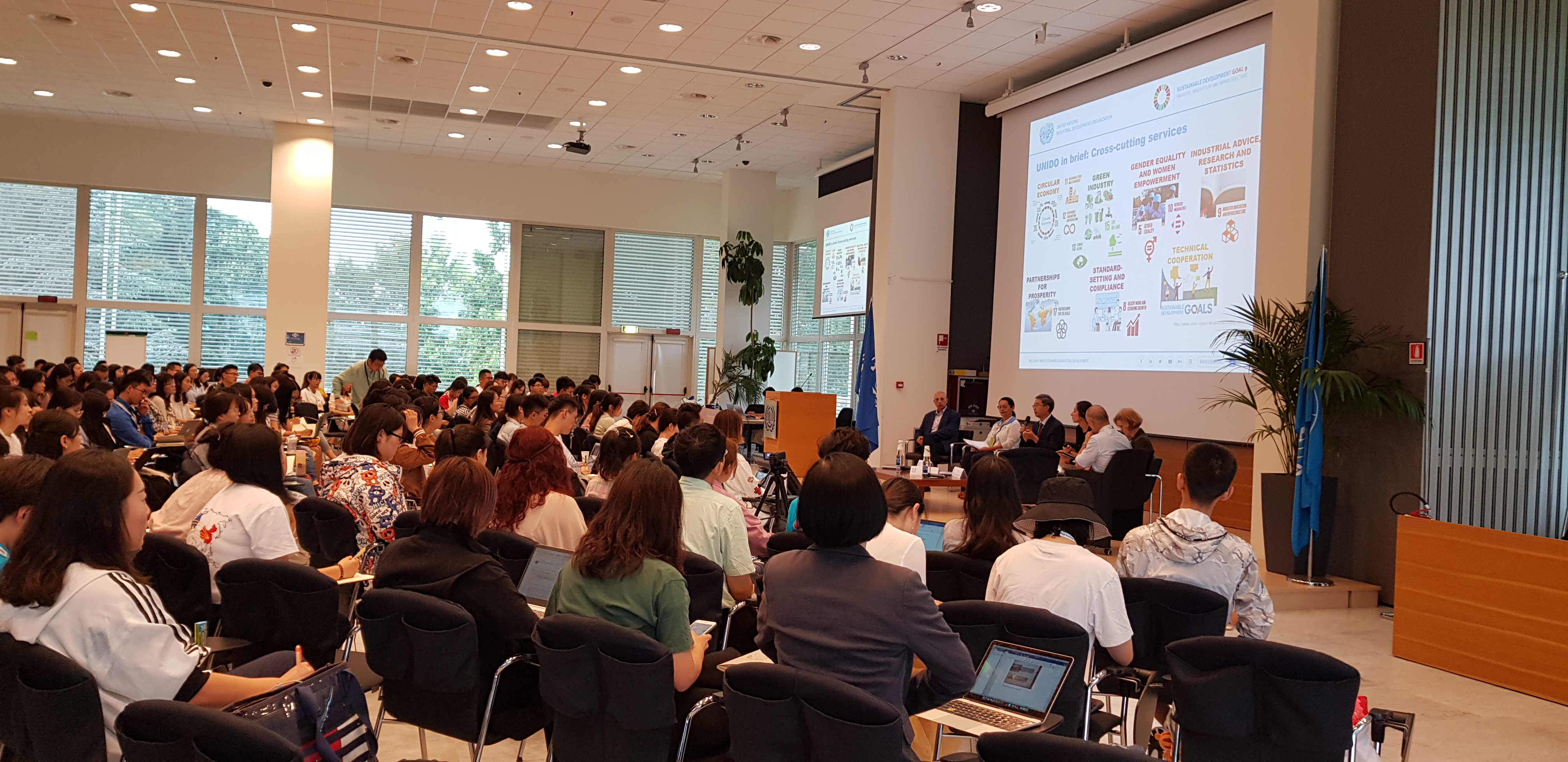 Mr. Wang gave a brief introduction to the history of UNIDO, an international organization established in 1966. UNIDO provides cross-cutting services in areas including circular economy, gender equality and industrial advice. Mr. Wang pointed out that UNIDO always attaches great importance to the environmental and gender issues that are closely related to SDGs and the background and development of SDGs. In terms of cooperation with China, since 1963 UNIDO has been receiving donations from Chinese government. Starting from 2020, China will be the number-one donor to UNIDO. Moreover, Mr. Wang mentioned that China also received constructive advice from UNIDO about the booming of domestic industry and the implementation of the Reform and Opening-Up policies. In closing his speech, Mr. Wang encouraged participants to join in and work for the UN in the future.